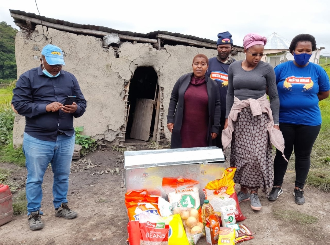 It was on 2022 October Ubuntu Restoration Foundation visited Gwadiso Family at Mvilo location, Ngqeleni.  Where a man lives in the structure behind (Mr Gwadiso standing behind with a navy hat).  Ubuntu bought some groceries and a beam to keep the groceries as the structure is not rainproof.